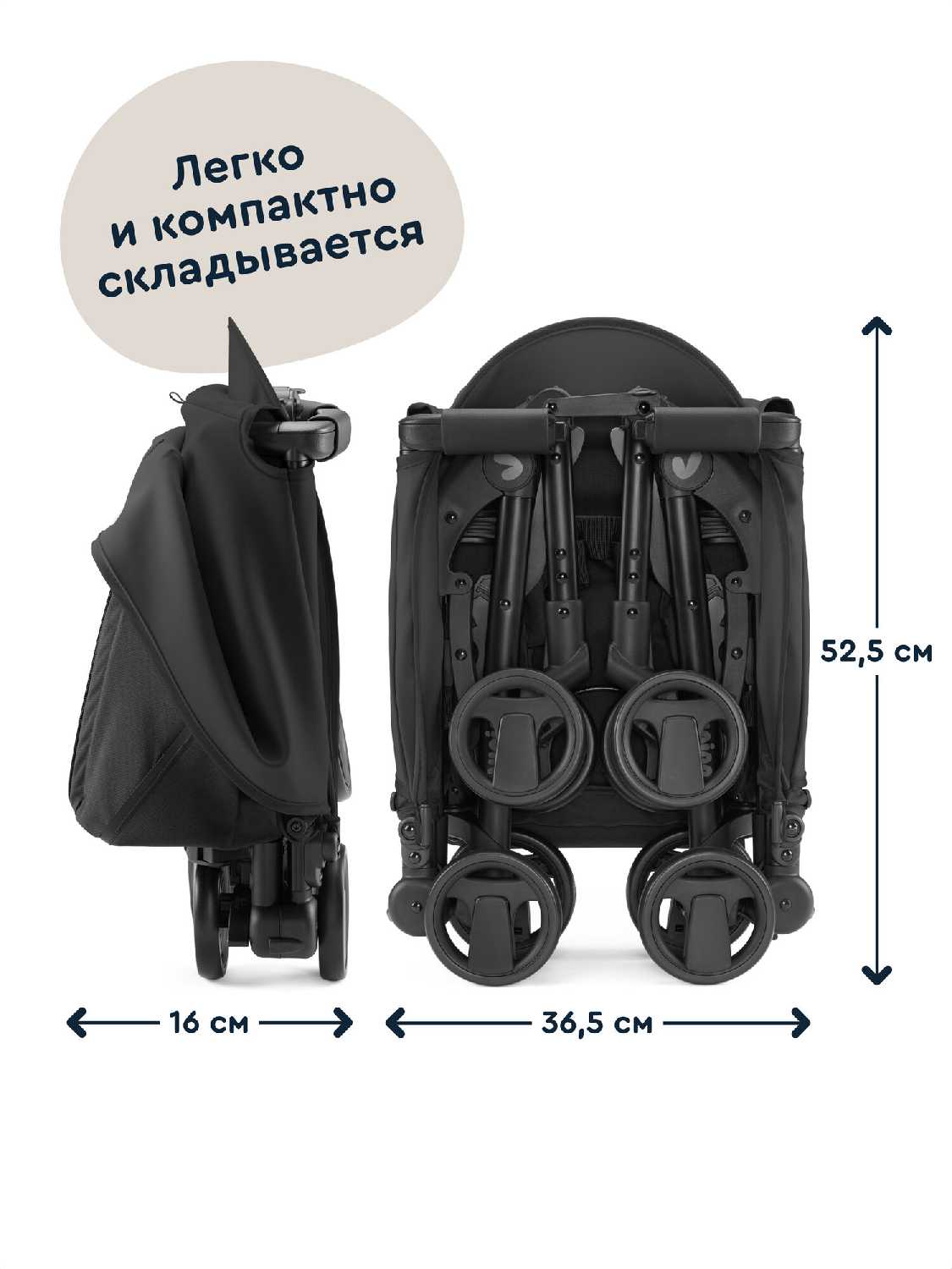 - + Компактная и легкая коляска
