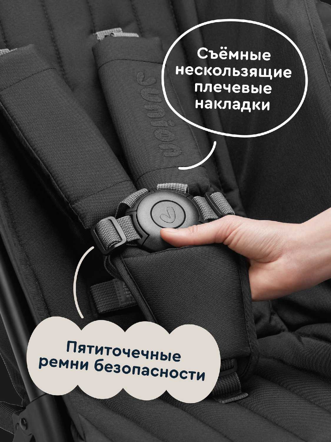 - Пятиточечные ремни безопасности с мягкими накладками исключают натирание кожи при длительном использовании.