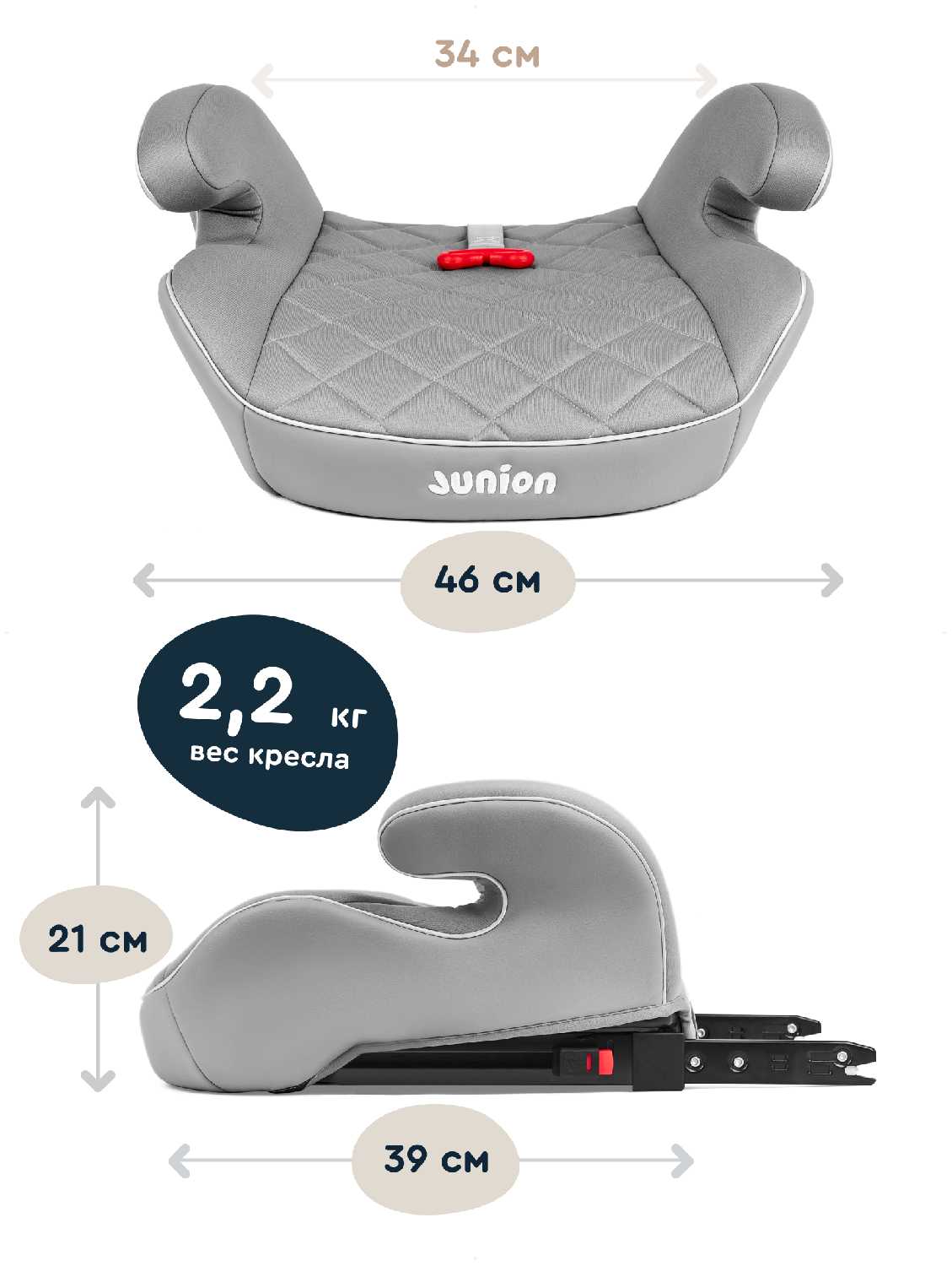 - Вес бустера — 2.3 кг, что на 40% легче среднестатистических моделей с Isofix. Родители отмечают удобство переноски и установки в такси.