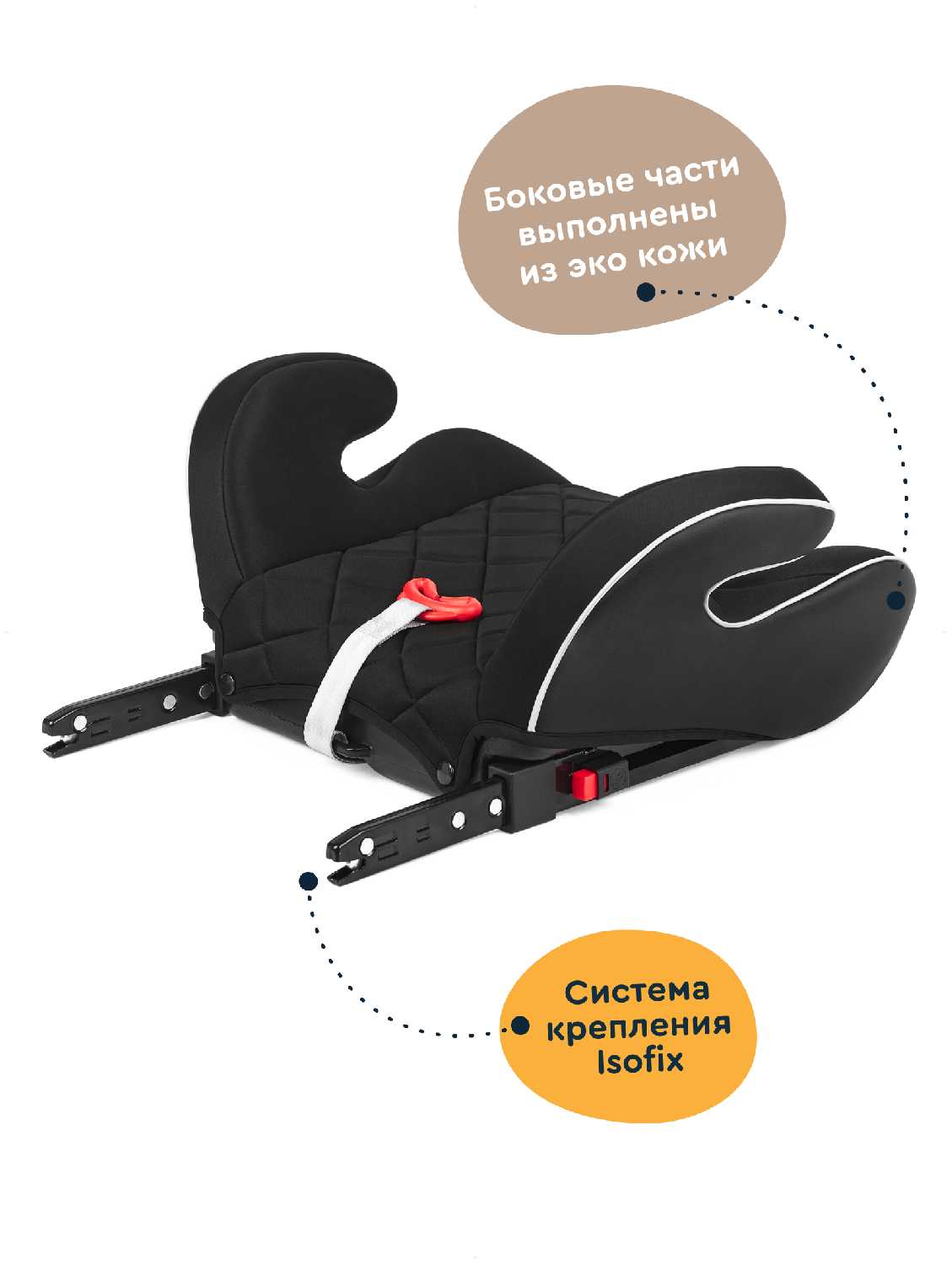 - Салазки Isofix полностью убираются в корпус, превращая бустер в обычное сиденье для крепления штатным ремнём.