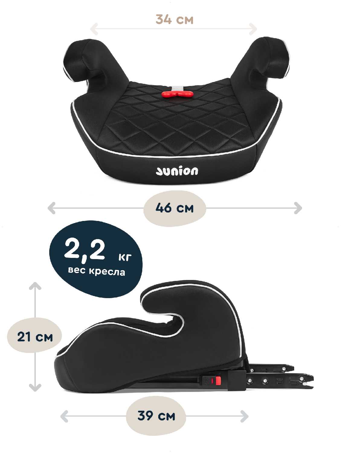 - Вес бустера — 2.3 кг, что на 40% легче среднестатистических моделей с Isofix. Родители отмечают удобство переноски и установки в такси.