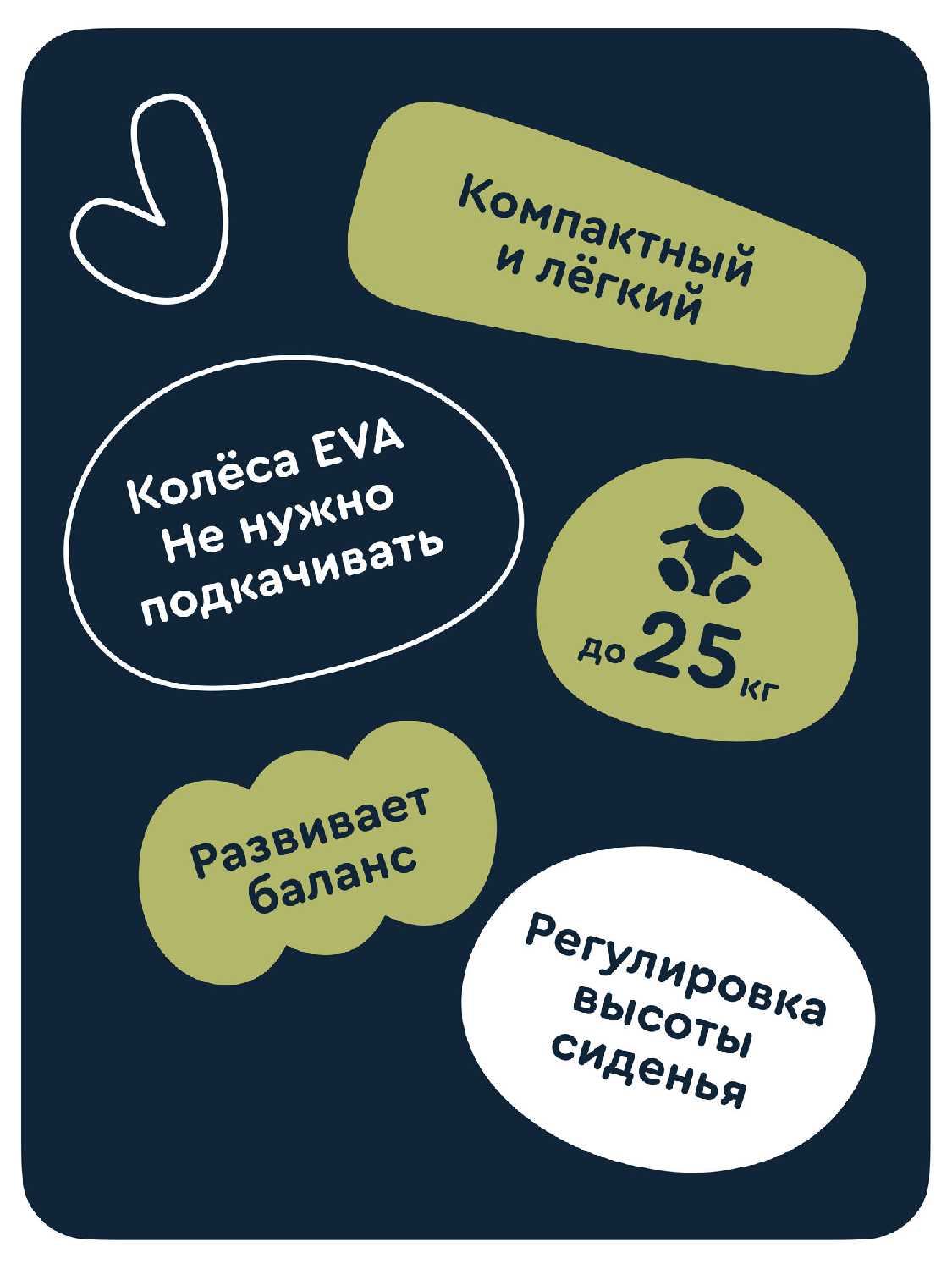 - + Красивый беговел, купили дочке на годик, сама пока не катается, но ей очень нравится когда её катают. Сидение регулируктся по высоте, для малышей очень отличная игрушка.