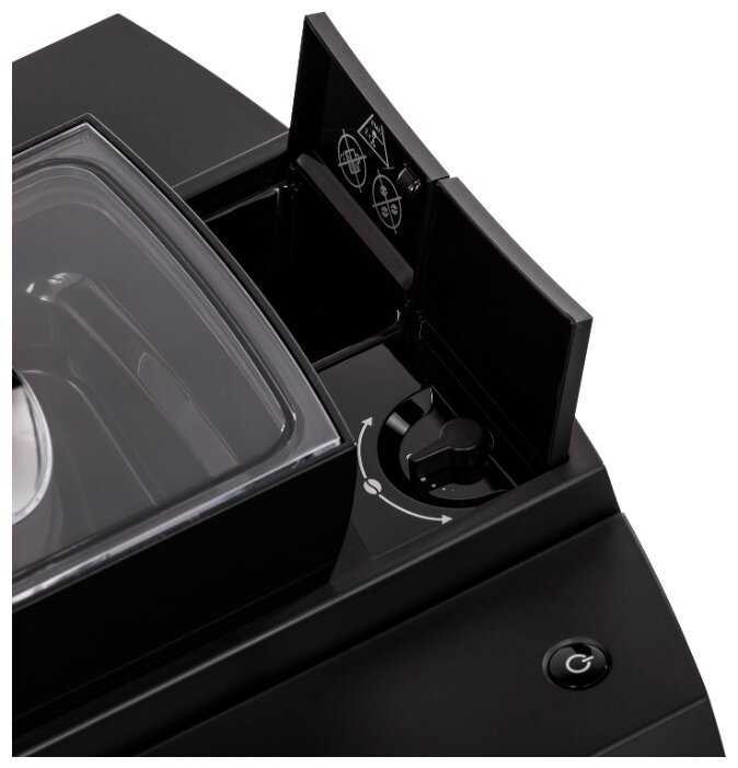- + Вместительный контейнер для зерна на 500 гр и объёмный бункер для воды на 3 л. Качественная сборка. Большое количество приготовленных чашек с безупречным кофе.