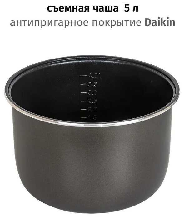 - Подходит для большой семьи: большая чаша 5 л хватает на несколько приемов пищи.