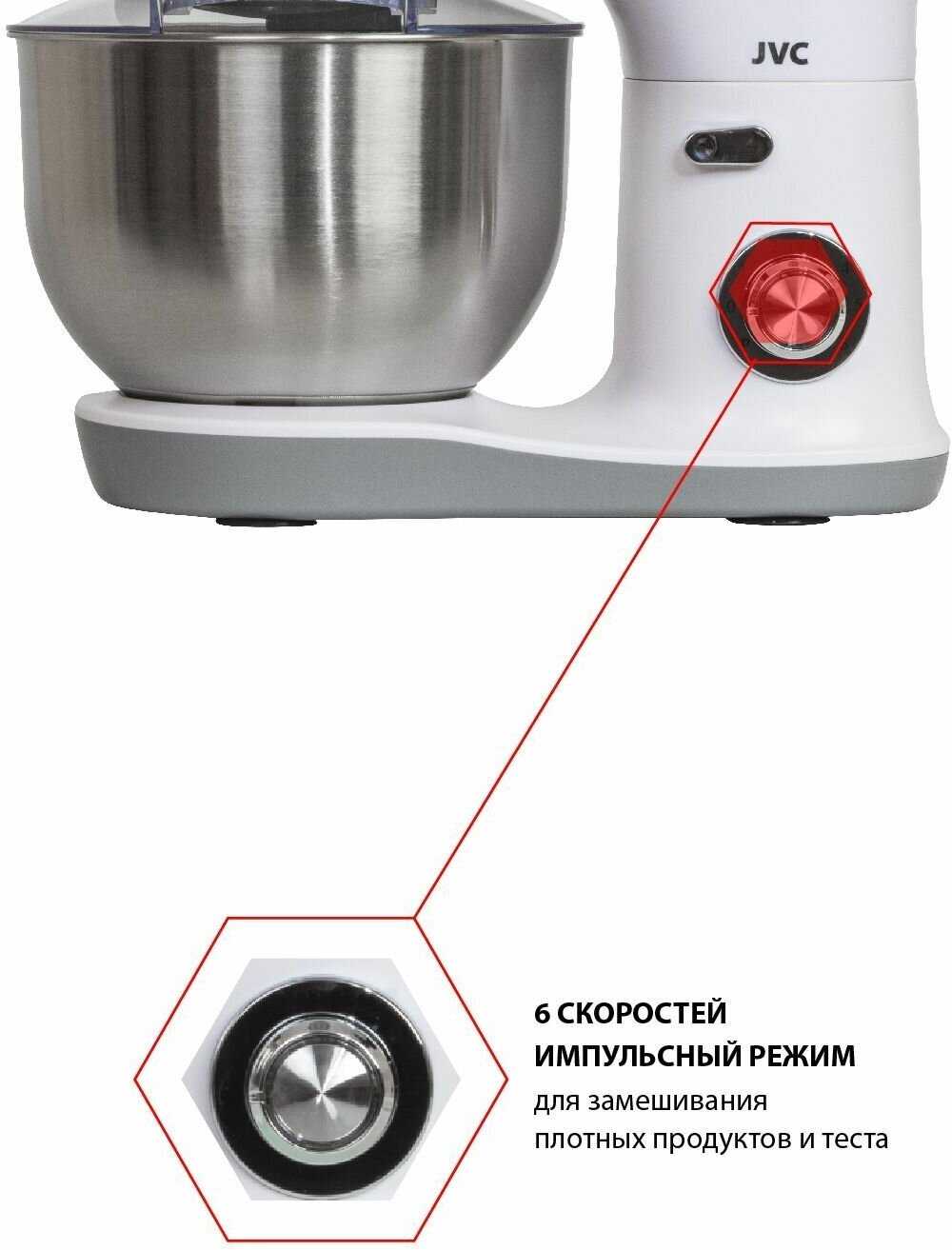 Отзывы о Миксер планетарный JVC с чашей 5,2 литра, импульсный режим, 6 скоростей, 3 насадки, 1200 Вт
