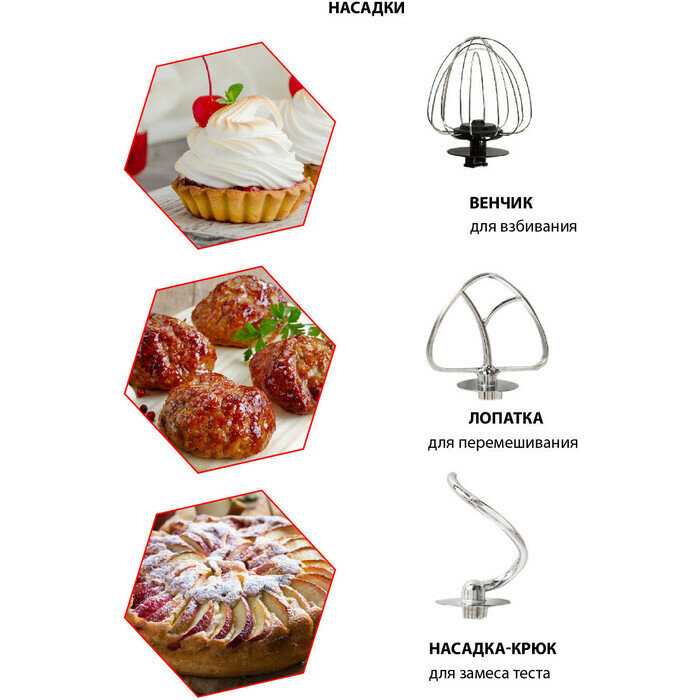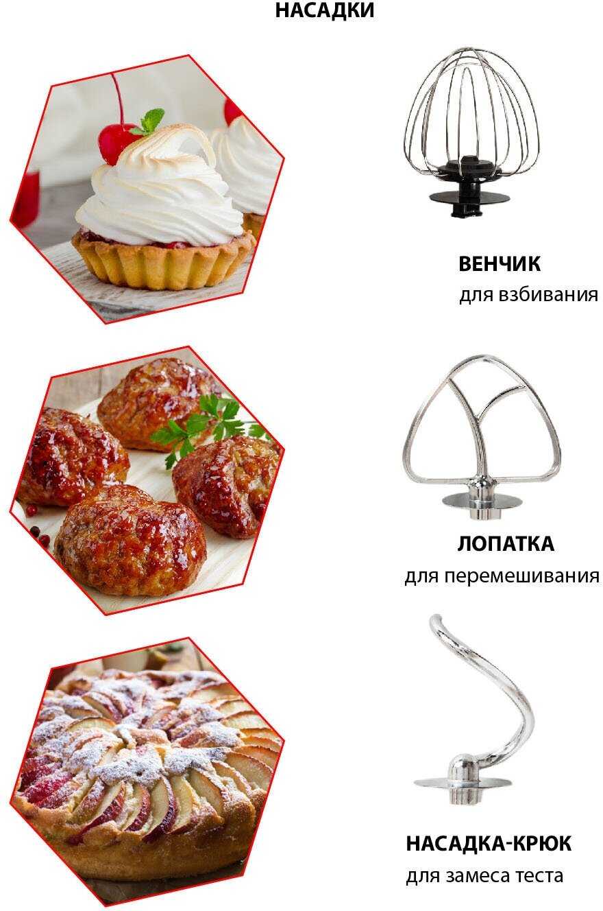 - насадки: крючки для замешивания теста