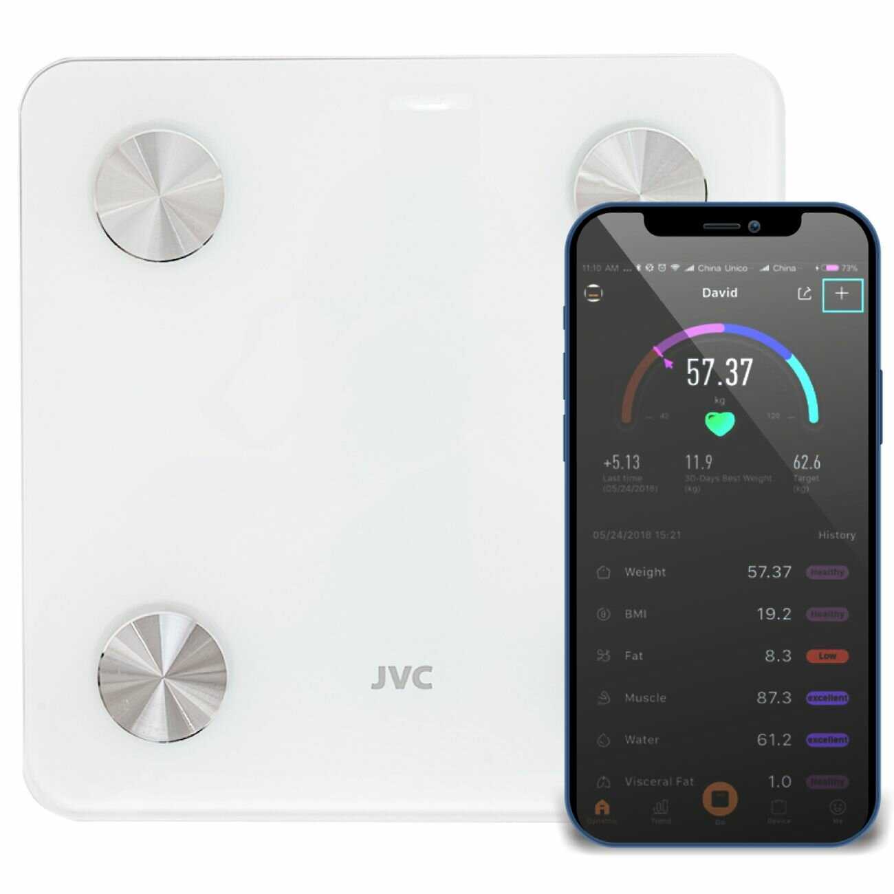 - + Взвешивает массу тела с минимальной погрешностью , определяет процент жировой , костной ткани.Подключается к смартфону и записывает историю измерений.И всё это за адекватную цену