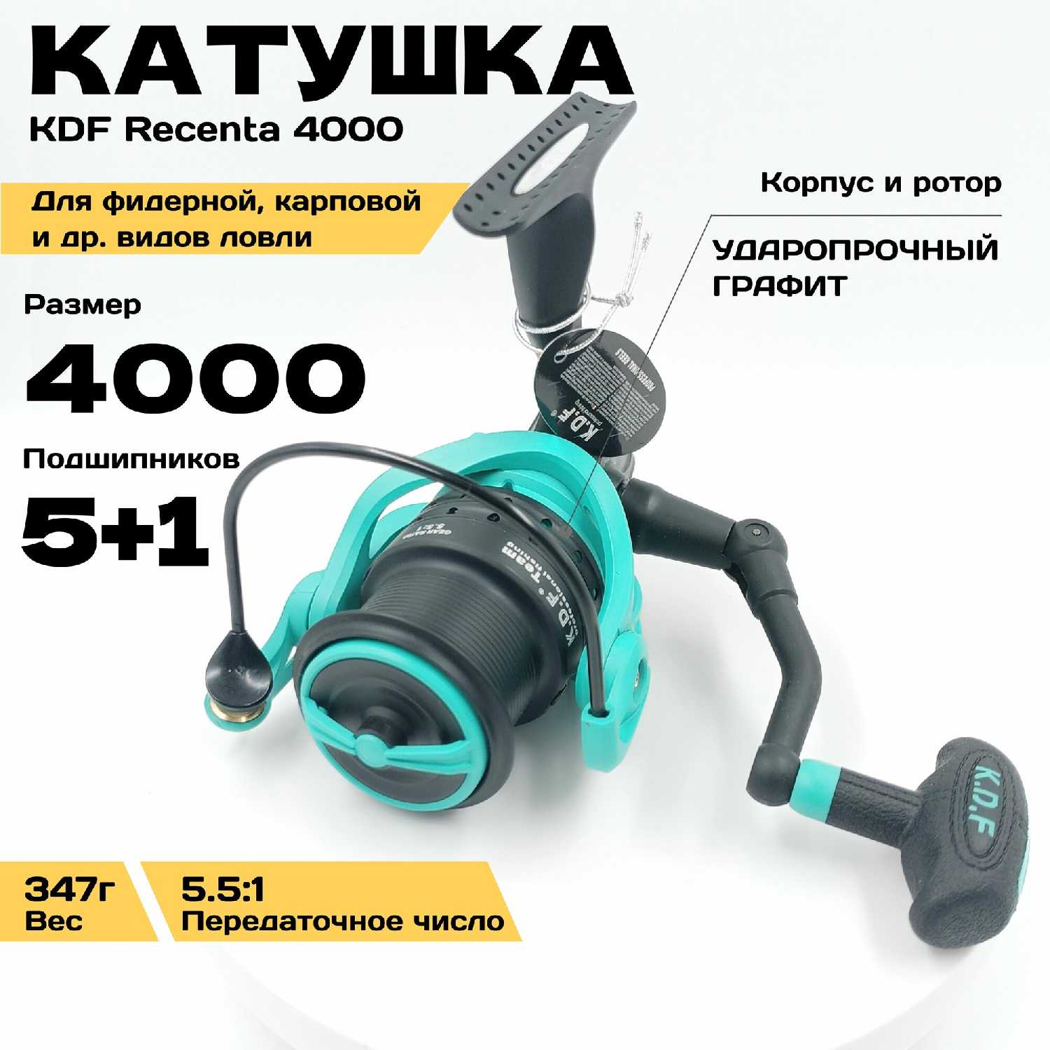 Катушка рыболовная для фидерной, карповой ловли, KDF Recenta 4000, ударопрочный графит, 5+1 планетарный, Передаточное число 5.5:1 — 9 отзывов, плюсы и минусы