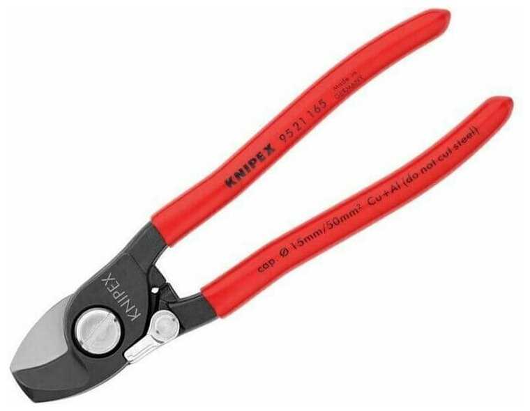 Knipex Кабелерез, с пружиной, рез: кабель d 15 мм (50 кв. мм, AWG 1/0), 165 мм, чёрный, 1К ручки