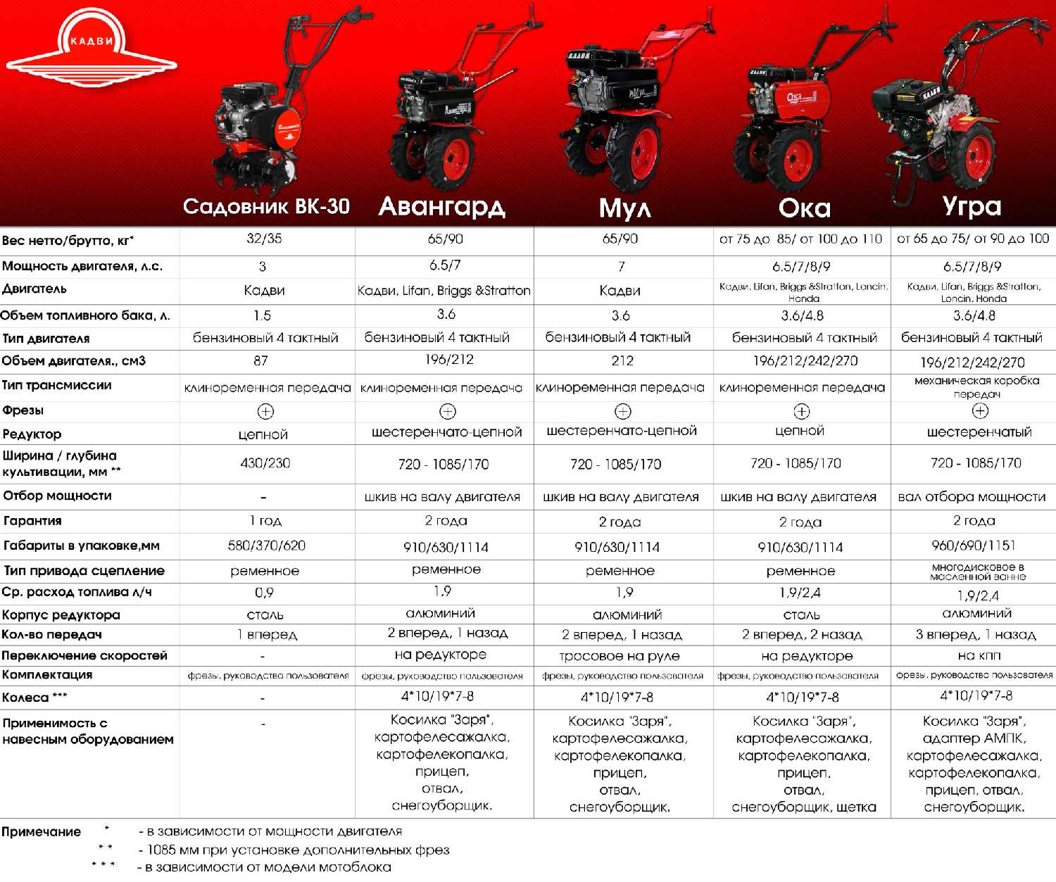 | Оснастка : | грунтозацепы, картофелекопалка, косилка, окучник, плуг, прицеп/тележка, рыхлитель, снежный отвал, сошник, фрезы |