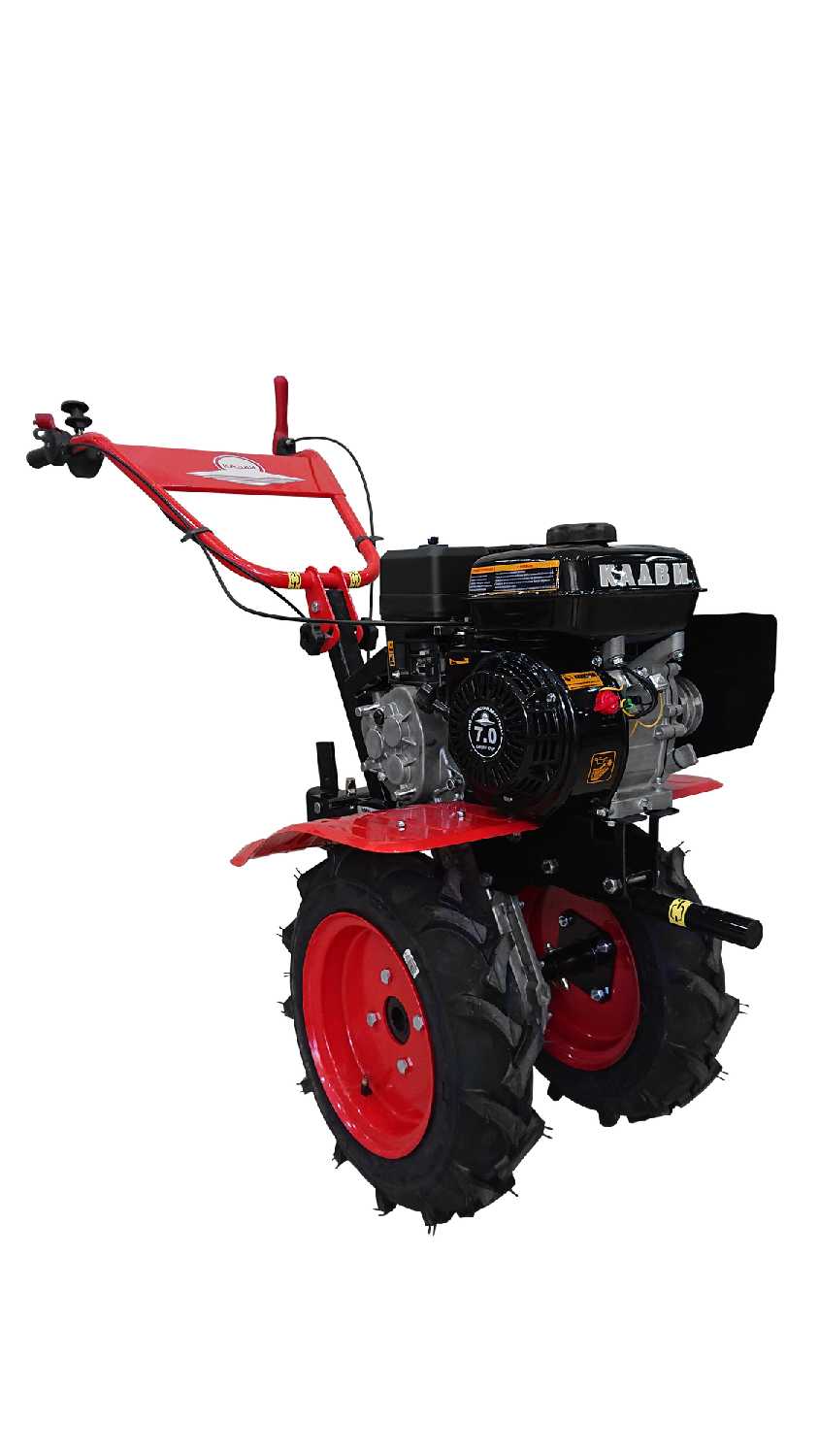 | Оснастка : | грунтозацепы, косилка, окучник, плуг, прицеп/тележка, сошник, сцепка, удлинитель, фрезы |