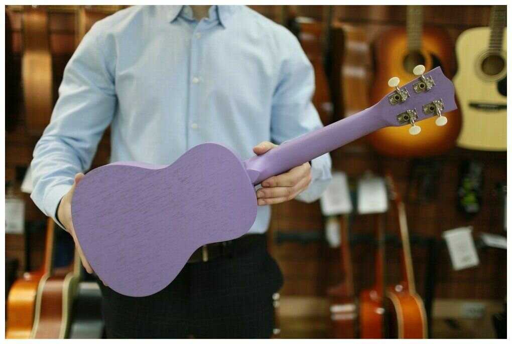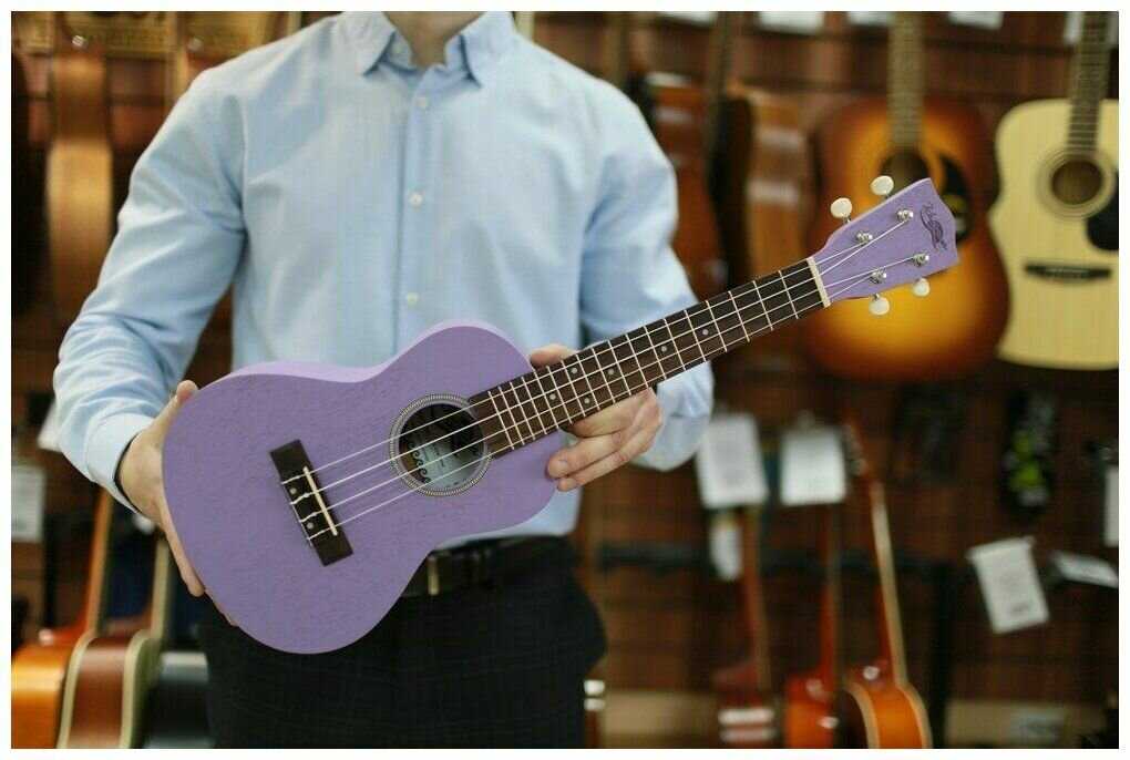 - + прекрасная укулеле, цвет намного лучше, чем на стоковых фото. ни трещин, ни изломов, ни непрокрашенных мест обнаружено не было. струны стоят хорошие, мягкие, порожки прокручиваются. укулеле полностью из дерева - за что огромный плюс