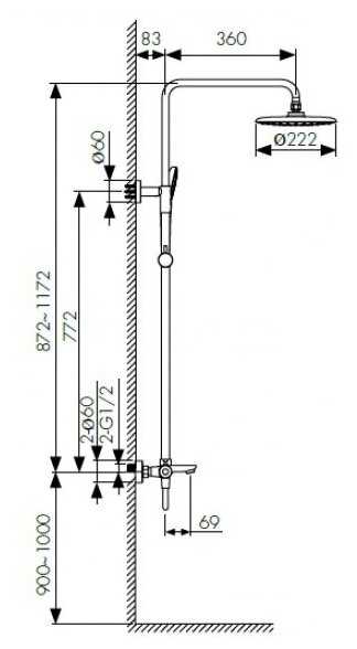 | Высота стойки для душа : | 1172 мм |