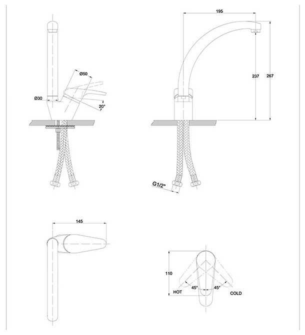 - тип подводки: гибкая