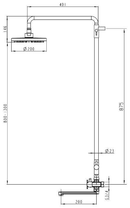 | Дополнительная информация : | высота стойки для душа: 875 мм, диаметр верхнего душа: 200 мм |