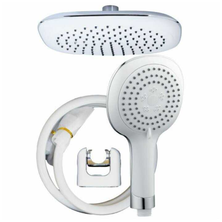 | Комплектация : | верхний душ, держатель лейки, лейка, ручной душ, шланг |