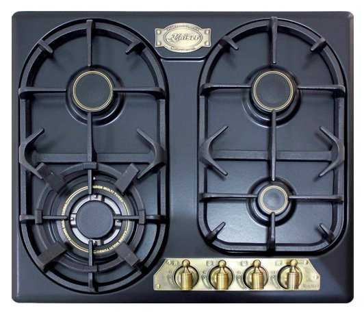 Красивый винтажный дизайн. Покупали ее вместе с таким же духовым шкафом, получилось очень стильно. Конфорки разного размера, одна из них это знаменитая Тройная корона, которая на самом деле очень практична и удобна. Электроподжиг срабатывает очень оперативно, ручки управления удобные, крутятся легко и плавно. Поверхность легко мыть.