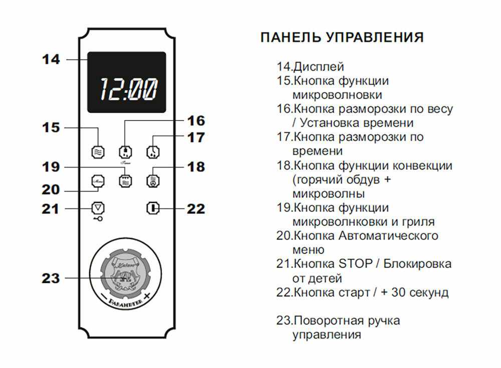 | Дополнительные режимы : | автоматическая разморозка, автоматическое приготовление |