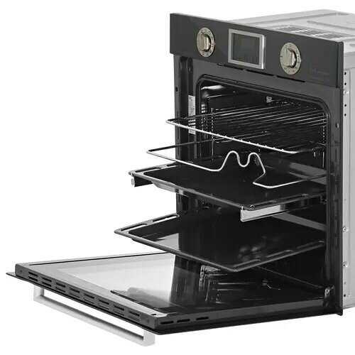 Отличный духовой шкаф! Красивый, легко чистить после использования, так как жир разлагается уже в процессе готовки, качество на высоте. Направляющие чудесны, очень удобно. Важным фактором при выборе было наличие вертела - далеко не во всех духовках он присутствует. Рекомендую к покупке!