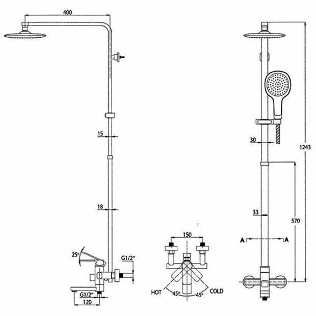 | Дополнительная информация : | высота стойки для душа: 1243 мм |