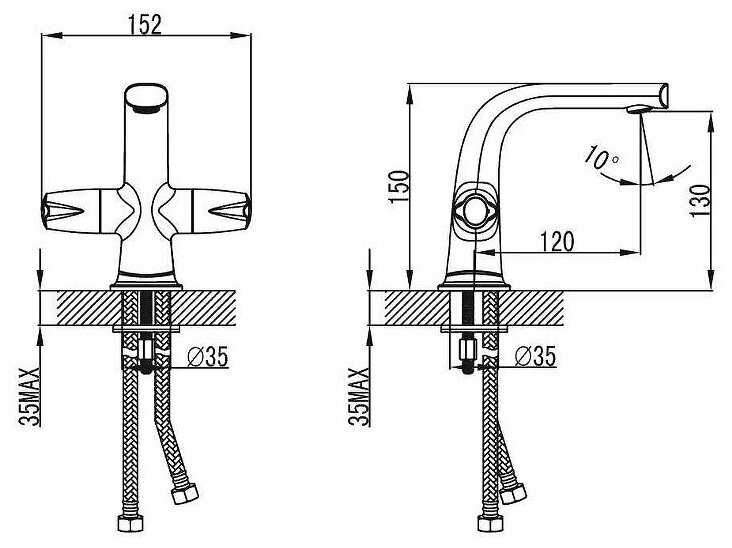 - тип подводки: гибкая