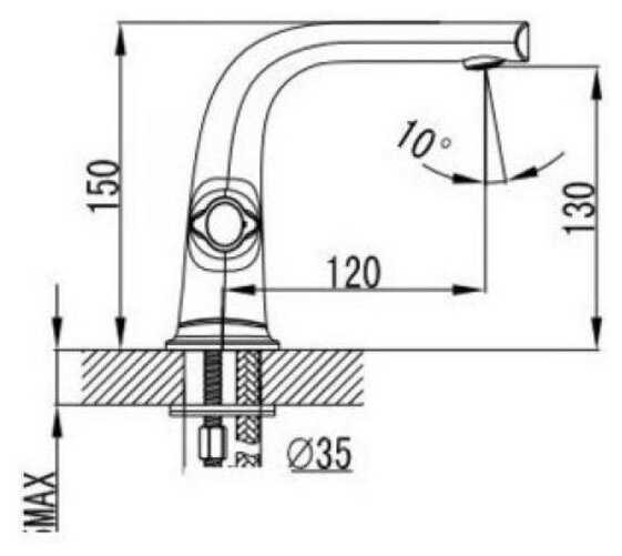 - длина излива: 120 мм.
