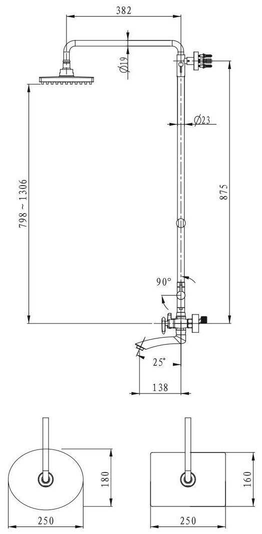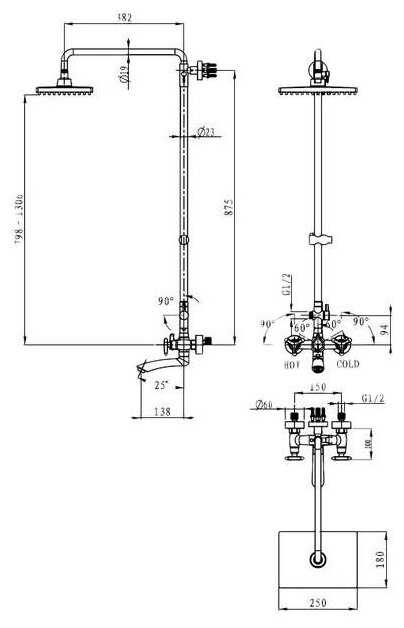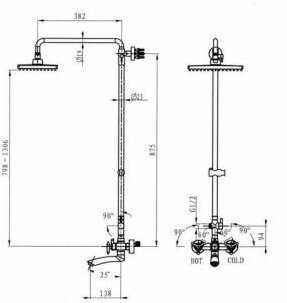 Дополнительная информация : | высота стойки для душа: 875 мм, длина верхнего душа: 180 мм, ширина верхнего душа: 250 мм |