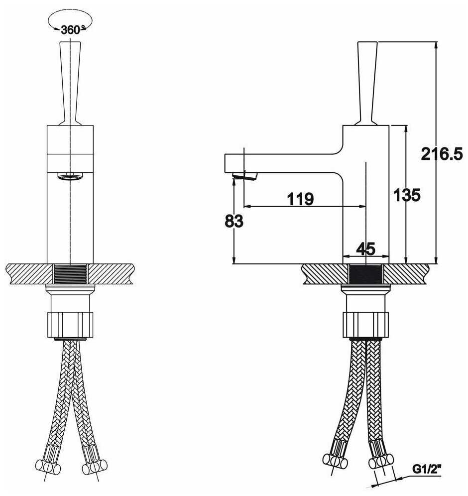 - высота излива: 83 мм.