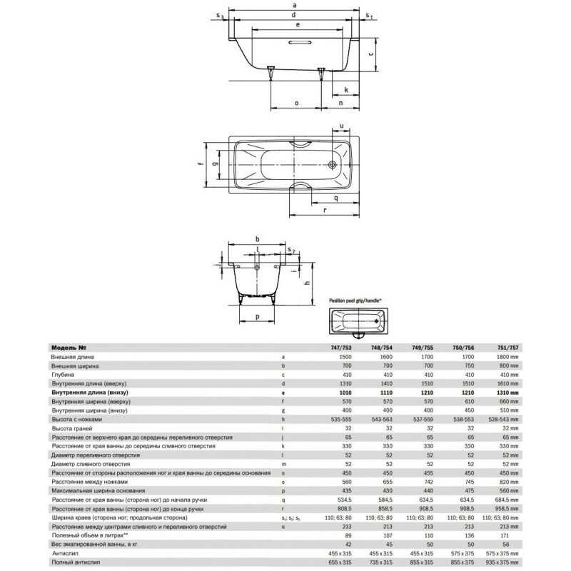 При длине 170 см и ширине 70–75 см ванна обеспечивает достаточное пространство для пользователей ростом до 190 см. Прямые борта и глубина позволяют полностью погрузиться в воду без дискомфорта. Объем ванны оптимизирован для экономии воды, при этом сохраняя удобство для продолжительного отдыха. -