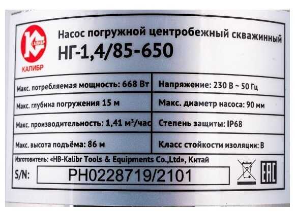 Отзывы о Скважинный насос КАЛИБР НГ-1,4/85-650
