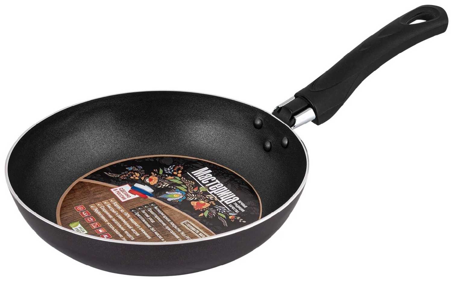 - + Недорогая сковорода, которая прослужит до года