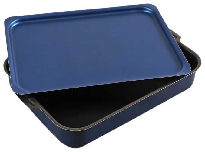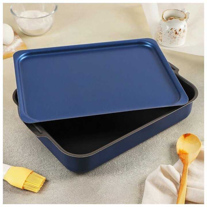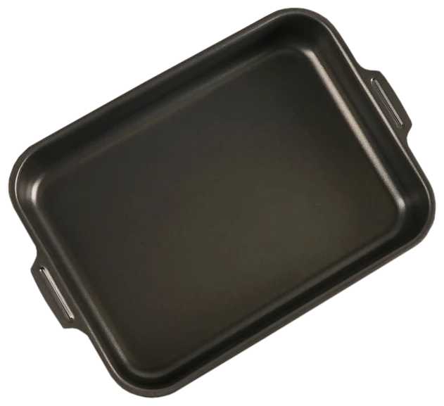 - + Очень удобный противень для запекания в духовке вторых блюд. Моется легко. Пища не пригорает. Покупала на семью из 4 человек