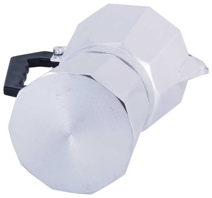 - - Сделана из чёрного металла, замаскированного снаружи покрытием из никелевого сплава. Из-за большого диаметра нижней части, трудно открутить, не за что уцепиться, ручка в нижней части не предусмотрена. Крышка в месте крепления прилегает неплотно, можно обварить пальцы горячим паром. В целом, для соединения двух частей кофеварки было бы гораздо удобней, если бы использовалось цанговое соединение, а не резьбовое.