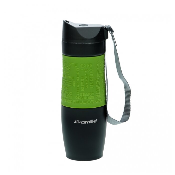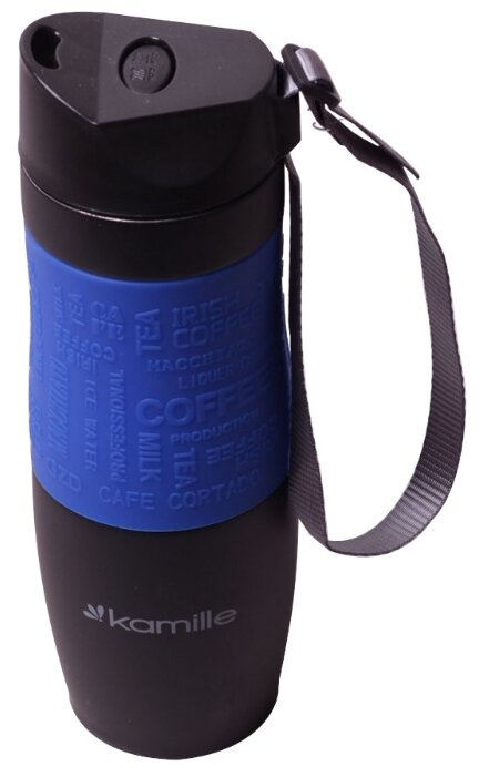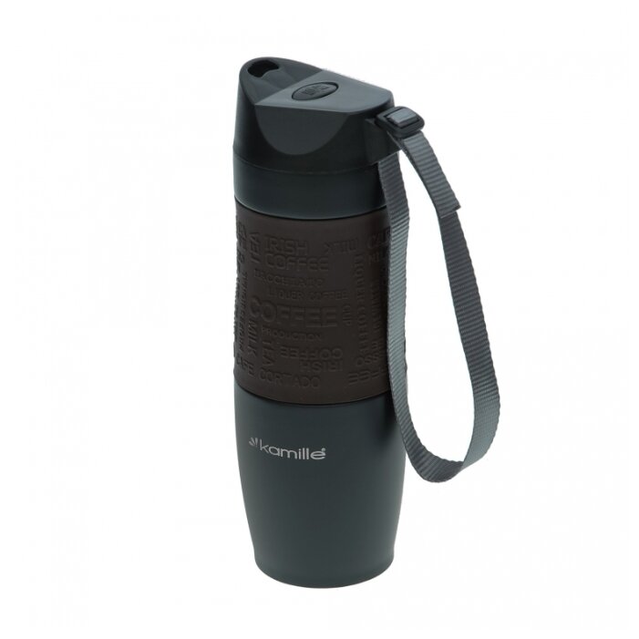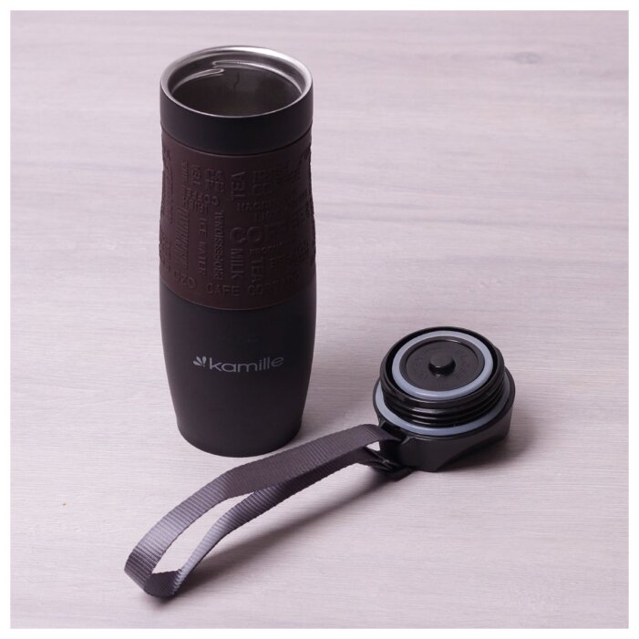 - + Термокружка очень удобная, на два стакана обьем. Кофе в ней долго не остывает. Удобно пить, нажимаешь кнопку и пьешь.Еще из удобств это ремешок, можно не держать кружку в руке все время. Резиновая накладка на корпусе позволяет руке не скользить.