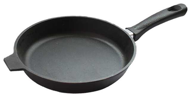 Достоинства: после правильного прокаливания - ничего не пригорает, удобная форма с довольно вертикальными стенками, что увеличивает полезную площадь дна. Ручка удобная и не нагревается.