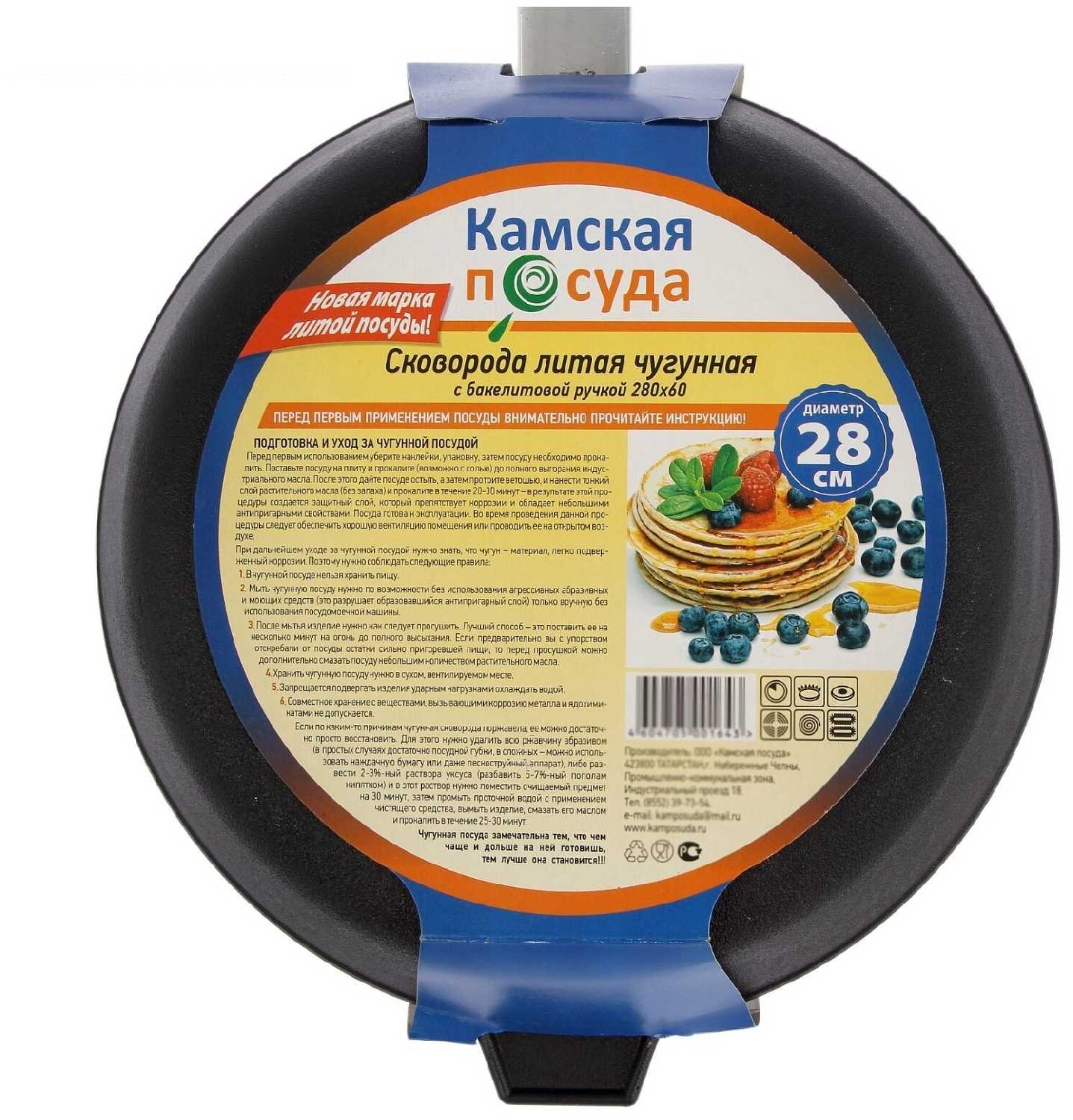 Посуда из чугуна прослужит долго при соответствующем уходе. Нельзя в ней хранить еду. Боится влаги, ржавеет. После готовки надо просушить на огне и протереть насухо. А перед первым применением обязательно обжечь на огне для создания антипригарного покрытия. Оно лучше всяких специальных покрытий от Tefal. И можно не боятся, что поцарапаешь, или перегреешь. Сковородка тяжелая, а ручка крепится только на одном винте. Со временем разбалтывается, надо подтягивать. Советую сразу после покупки приобрести к ней крышку соответствующего размера. Размер подходит, только слегка свободно, не впритык. Еда получается вкуснее, чем в обыкновенной сковороде из-за равномерного нагрева стенок. При желании можно использовать в духовке, только лучше снять ручку. При получении заказа осмотр обязательно. Всем удачи с покупками.