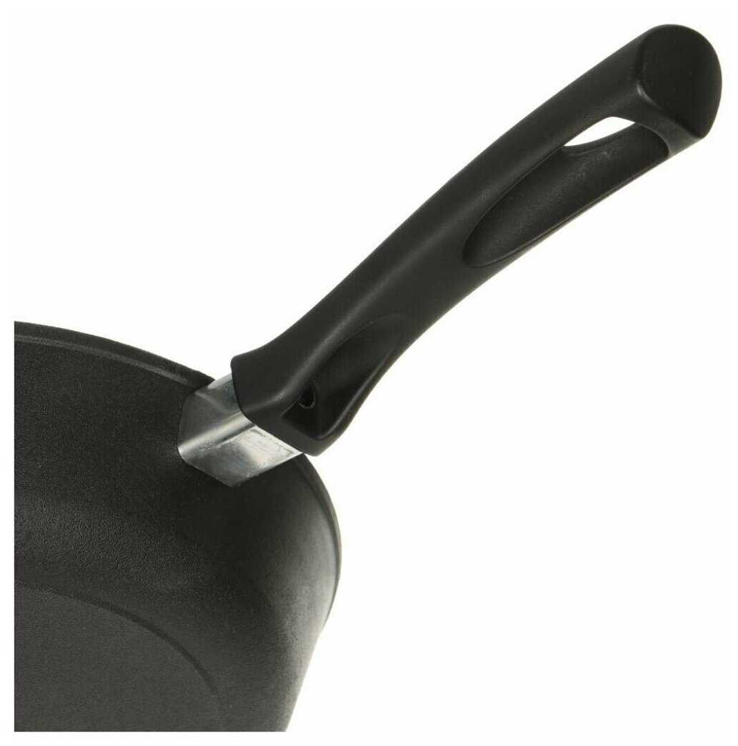 Мне досталась сковорода с не совсем ровным дном. На взгляд все ок, но на стекле качается (зазор 0,7мм). У меня индукционная панель и плотность прилегания важна для эффективности. Крепление ручки не выглядит надежным (на 1 винт),...