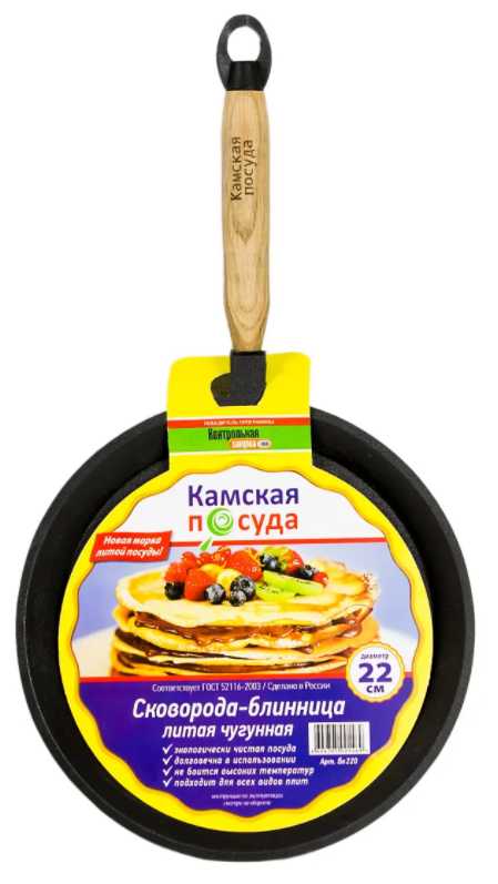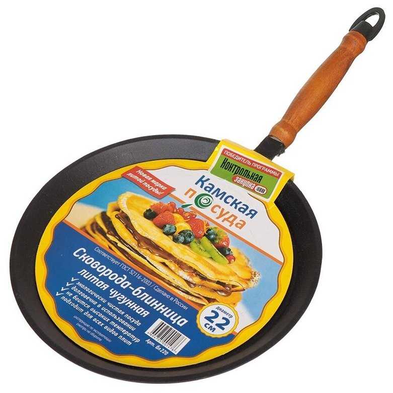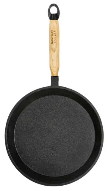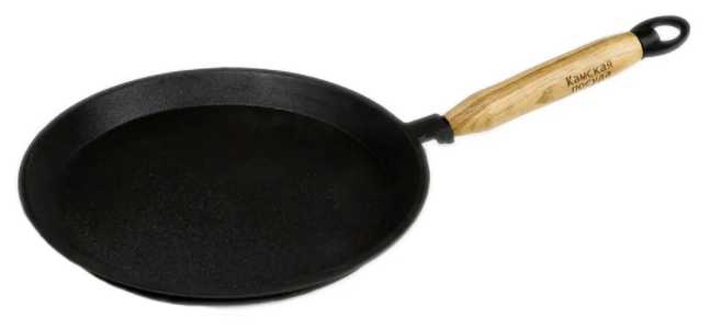 - + Чугун (тяжёленькая), толстое дно, удобная и откручивающаяся ручка, правильные бортики, пропекается блинчик на отлично. Пицца в духовке тоже получилась вкусная, я делала ее первый раз в жизни и удивилась тому, насколько вкусно получилось, это все из-за сковородки. Рекомендую к покупке! Камская посуда, спасибо за вашу работу.