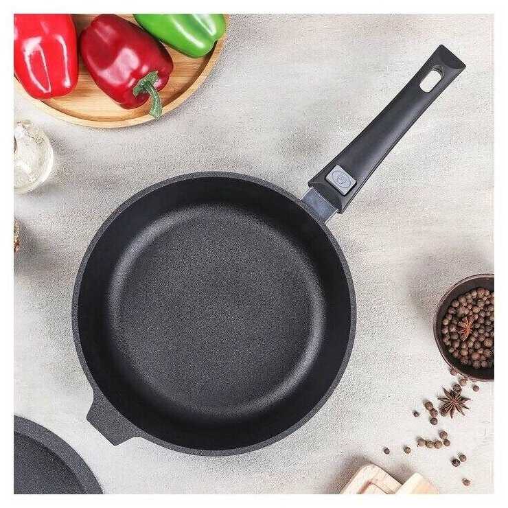 - + Отличная сковорода, качество хорошее, удобно съёмная ручка, не пригорает, вкус получается у блюд фантистический