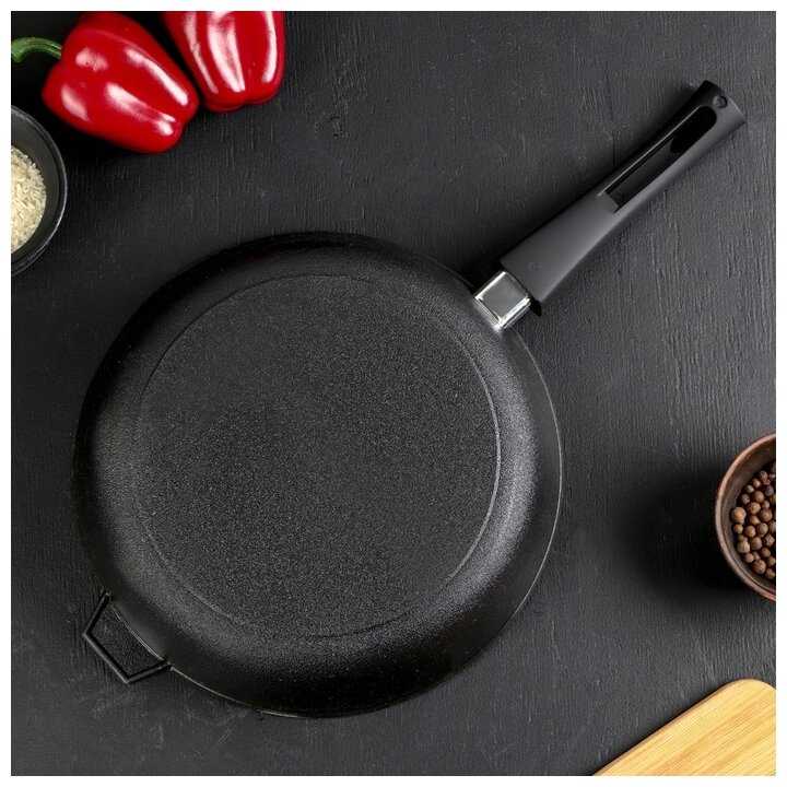 Муж давно мечтал о сковороде для цыплёнка табака, доволен приобретением. Я жарила куриное филе - результат замечательный. Нравится съёмная ручка - компактное хранение. С доставкой проблем не было. К покупке рекомендую