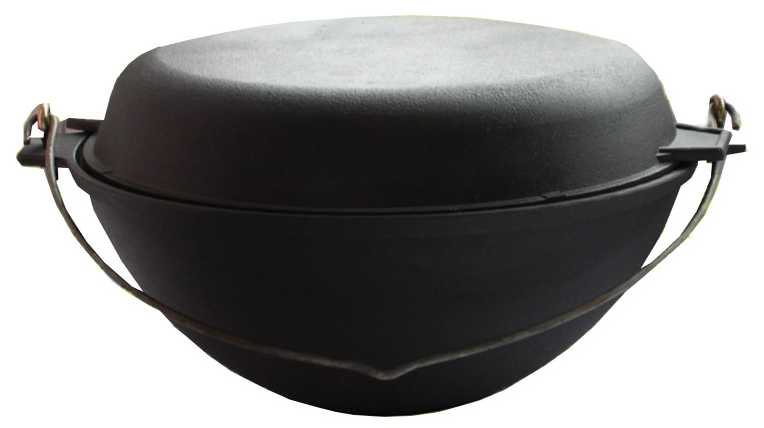 - + Компактный. Два в одном. Казан+крышка(сковородка).