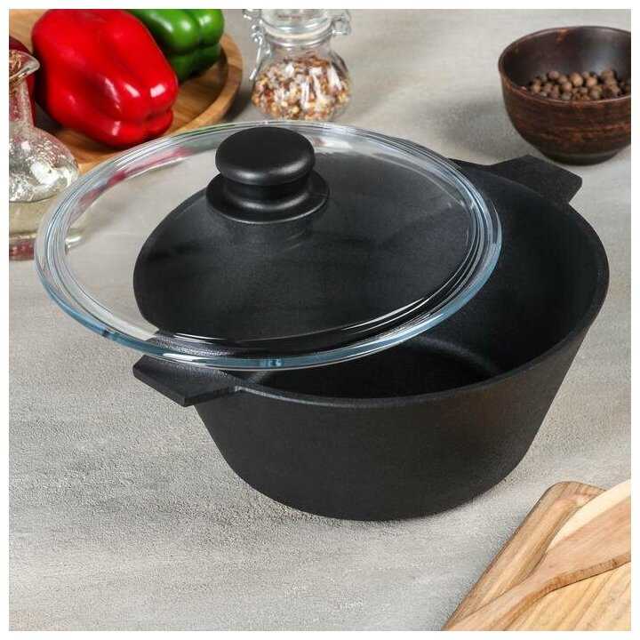 - + Кастрюля чугунная 2,5л. литра со стеклянной крышкой. качество отменное. хорошо всё упаковано. К покупке рекомендую.