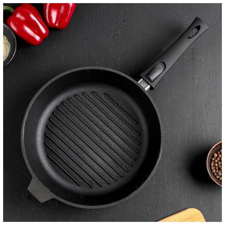Отзывы о Сковорода гриль литая чугунная 280х60 со съемной ручкой 4641448