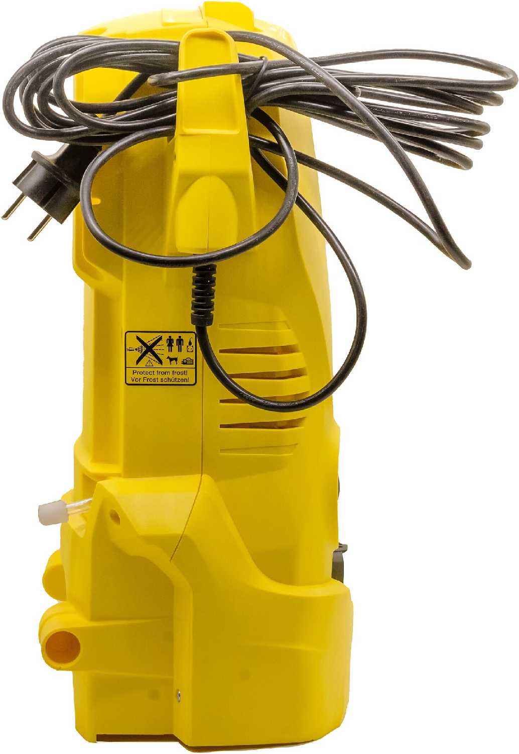 Технические параметры в реальных условиях: Потребляемая мощность 1400 Вт делает аппарат чувствительным к падению напряжения в сети: при показателях ниже 200 В мощность падает, требуется стабилизатор. Встроенный фильтр не спасает от мелкого песка и ржавчины — пользователи рекомендуют установку дополнительного внешнего фильтра. Режим забора из емкости функционирует только при отсутствии воздуха в системе: после ручного заполнения шланга и с высотой источника ≥1 м. Расход воды при мойке дорожек или фасадов минимален благодаря точечному воздействию, но для больших площадей (фасады, заборы) неприменим из-за малой зоны охвата струи и необходимости близкого расположения сопла. Шум двигателя в пределах нормы, но вибрация усиливается при износе помпы.