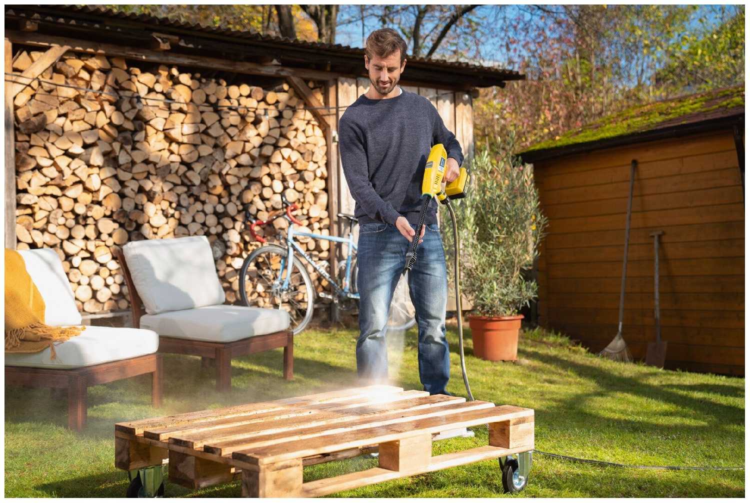 Отлично справляется с мытьем садовой мебели, инвентаря, веранды, дорожек и опрыскиванием деревьев. Пользователи на даче ценят автономность без удлинителя. Моет беседки, наружные блоки кондиционеров и полы в доме. Для тли на деревьях и окон подходит хорошо. Компактность позволяет хранить без проблем. -