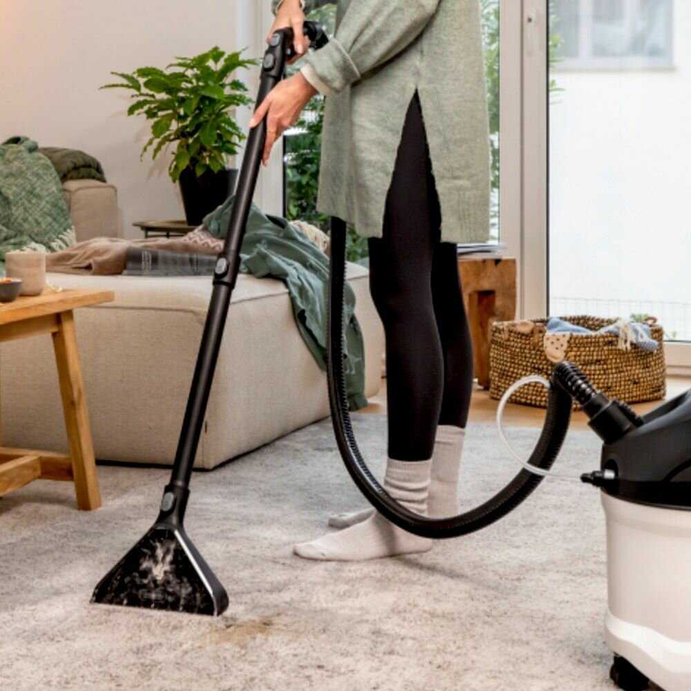 - Мощность всасывания 1000 Вт вытягивает грязь из глубины ворса ковров среднего ворса, делая поверхность ярче и свежее после обработки, с минимальной остаточной влажностью для сушки за 3-4 часа.