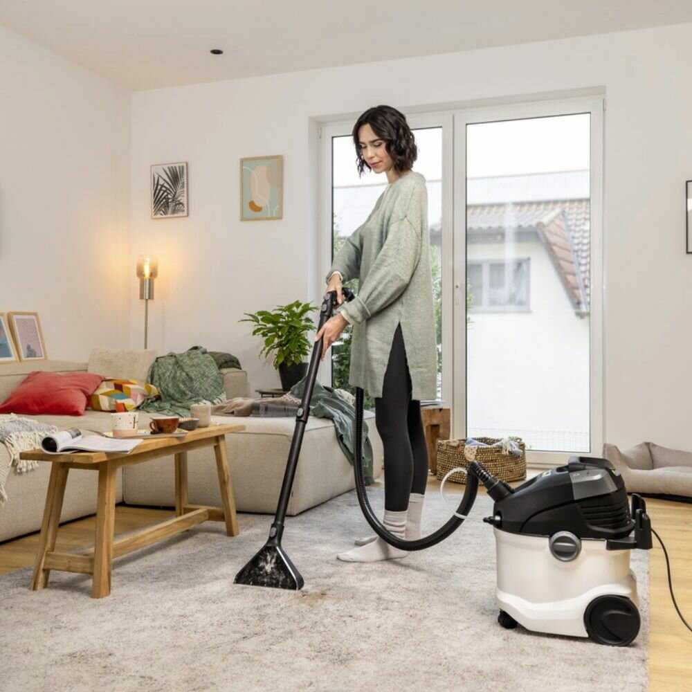 Мощность и эффективность очистки Абсолютное большинство пользователей подтверждает выдающуюся всасывающую способность пылесоса. Он успешно справляется с шерстью домашних животных (собак и кошек), глубоко въевшейся пылью в коврах с высоким ворсом и сложными загрязнениями на мягкой мебели. Функция влажной уборки и химчистки текстиля вызывает особый восторг: пылесос эффективно удаляет пятна с детских матрасов, светлых ковров, обивки диванов, кресел и автомобильных салонов, оставляя поверхности лишь слегка влажными для быстрого высыхания без разводов. Мощности достаточно даже для уборки строительных остатков (бетон, асфальт).