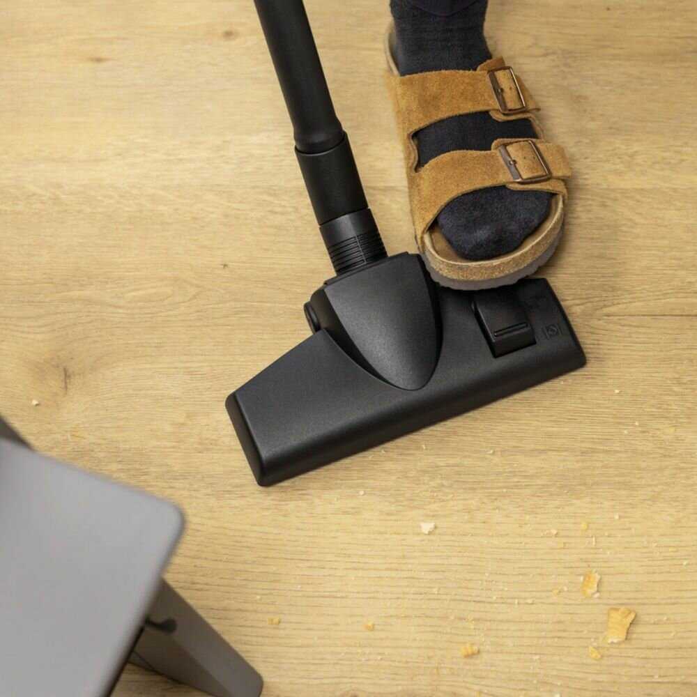 - Позволяет размещать корпус на полу во время чистки мебели или авто салона, минимизируя перемещение пылесоса и снижая усталость пользователя при работе в ограниченном пространстве.
