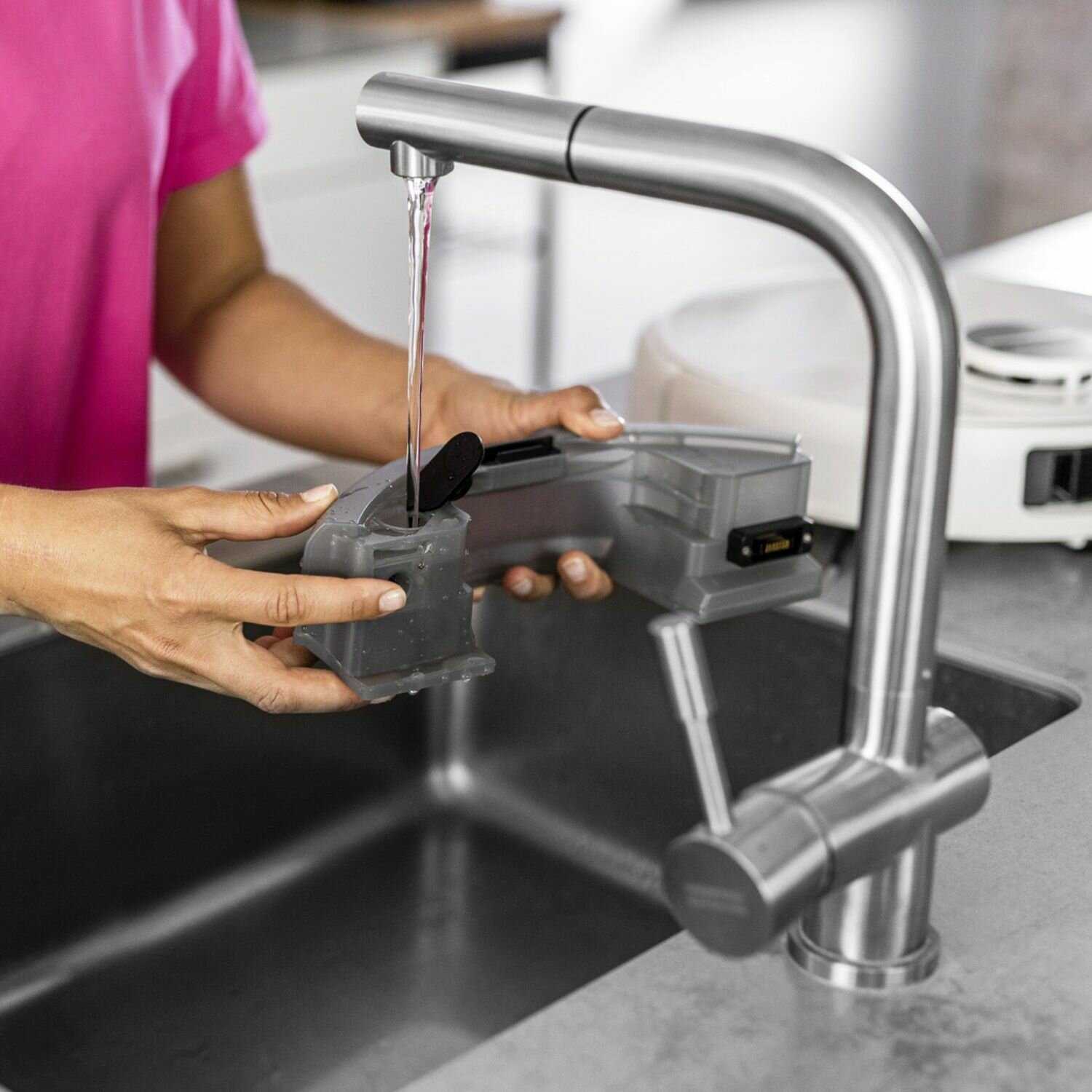 - + Влажная и сухая уборка, аккумулятор 3200 мАч, контейнер объемный, станция зарядки.