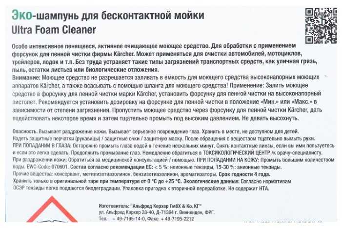 Купил для помывки авто, с момента последней мойки прошло два "грязеобразующих" весенних месяца. Нанёс, как рекомендовано, на сухой кузов автомобиля, после смыва в некоторых местах грязь всё-таки осталась (эффективность оценю на 90%), но после второго нанесения пены удалилась без труда. Для качественной мойки, на мой взгляд, необходимо варьировать соотношения шампуня и воды в пеногенераторе (если загрязнения больше, то больше доля шампуня и наоборот).